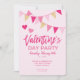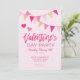 Une invitation à la fête de la Saint-Valentin rose pâle. "Valentine's" en police scriptée rose avec le bunting dans différentes nuances roses et or accroché sur le dessus de la carte. Cette carte est parfaite pour toute fête de Saint-Valentin ou de Saint-Galentin.