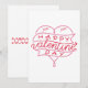 Cette invitation présente les mots « Joyeuse Saint-Valentin » dans une police d'impression unique avec des lettres rouges dans un design en forme de cœur rose ainsi que les lettres XOXO dans ce thème de la Saint-Valentin. Imprimé sur un papier classique de 17,5 pt d'épaisseur avec une finition mate non couchée avec une texture coquille d'œuf fabriqué et imprimé aux États-Unis avec "XOXO XOXO" imprimé au dos.