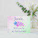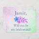 Une belle conception parchemin, cette invitation à la femme de chambre d'hôtes fleurie violette et verte est la meilleure façon de demander à l'être aimé d'être votre servante d'accueil. Son nom et "Serez-vous ma demoiselle d'honneur ?" est écrit dans un joli texte violet. Commandez dès aujourd'hui ! Conception de l'invitation : WeddingsbyRhoadie Clipart florale : AMBillustrations http://www.etsy.com/shop/AMBillustrations/