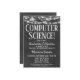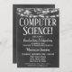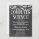 Une amusante invitation à la fête de remise de diplômes en informatique en noir et blanc avec des lumières brillantes au sommet.