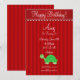 Invitation fantaisie de tortues vertes à rayures rouges, bordure de pétoncle aux coeurs parfaite pour une fête d'anniversaire sur le thème de la tortue