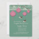 Quatre lanternes chinoises en papier sont accrochées à une branche de bambou. Deux oiseaux survolent votre personnalisation dans cette ravissante invitation. Convient à presque toutes les occasions heureuses. Vous voulez économiser de l'argent ? Imprimez cette invitation sur le papier d'angle carré de base.