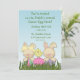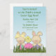 Cute invitation de Pâques avec lapins lapins lapins, poussins et oeufs assis dans l'herbe avec arrière - plan bleu. L'invitation peut être customisée pour la chasse aux oeufs de Pâques, les petits déjeuners de Pâques, etc. Les invitations sont accompagnées d'enveloppes et de votre choix de papier.