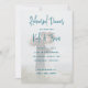 Répétition invitation dîner avec grand arrière - plan photo. Ajoutez une photo du couple pour créer l'image arrière - plan de cette carte. Le texte est utilisé en bleu foncé, en écriture moderne et en texte imprimé. Le dos des cartes plates sont également bleu foncé avec de minuscules coeurs motifs.