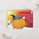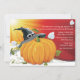 Des rayons de soleil jadis coulent sur la carte qui abrite un bel citrouille avec un casquette aux sorcières posé sur le dessus. Deux papillons blancs et des branches de vigne complètent le décor. Une merveilleuse invitation à Halloween pour les festivités d'Halloween en journée à tout âge.L'invitation est facile à customiser avec votre libellé, police, couleur de police et choix de six types de papier.