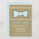 Invitation de vos invités à votre baby shower de façon amusante avec cette petite invitation à la cravate à l'arc bleu chevron.