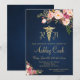 Infirmière diplômée de l'école de soins infirmiers ou infirmière autorisée faire-part avec des capucéus or et rose floral sur un arrière - plan bleu marine.