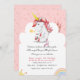 Une invitation vers un juste de fête d'anniversaire de petite fille hors de ses rêves de fantaisie. Les invitations roses a des étoiles, une licorne de sourire, un arc-en-ciel et un château rose. <br/><br/>Il est facile customiser la carte avec vos mots, police, couleur de police et choix de six types de papier<br/><br/>Pas exactement que recherchez-vous ? Tous nos produits peuvent être conçus en fonction du client pour répondre à vos besoins à aucun supplément<br/><br/>Contactez-simplement nous chez askpixieprints@aol.com. <br/><br/>Produits coordonnés disponibles :