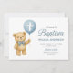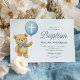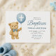 Une adorable invitation avec un ours en peluche et une croix, parfait pour célébrer la journée spéciale de votre bébé. Personnalisez les détails pour un gardien chéri de cette occasion significative.