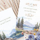 Donnez le ton à votre union montagneuse avec cette invitation Save-the-Date "Rocky Mountain Idyll", qui dépeint une scène aussi sereine et majestueuse que l'amour que vous partagez. Au premier plan, de majestueux pins se trouvent dans la riche à feuillage persistant, tandis que le lac paisible reflète la grandeur des Rocheuses lointaines, représentées dans des nuances subtiles de lavande, de bleu ciel et de gris ardoise. Le cuivre chaud et le charbon de bois profond du lettrage contrastent magnifiquement la palette cool et naturelle du paysage, invitant vos invités à un mariage entouré par la beauté impressionnante de Stanley, Idaho. Cette invitation est le prélude parfait à un mariage qui promet des vues à couper le souffle et une atmosphère d'élégance rustique.