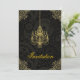Un lustre de style baroque très doré sur un arrière - plan noir. Modèle d'invitation entièrement personnalisable.