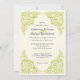 Invitez vos proches à célébrer votre jour de mariage avec cette invitation sophistiquée, présentant un motif de défilement chartreuse détaillé qui crée une atmosphère élégante et vintage avec une subtile touche marocaine. Changez la formulation pour l'adapter à n'importe quelle occasion. Un original 220 Luxe.