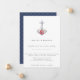 Belle ancre enjolivée de fleurs aquarelles avec un motif de noeud marin bleu marine, invitation de mariage sur le thème nautique.