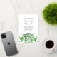 Ces invitations en feuille métallique apportent une touche élégante et stylée aux mariages et dîners de répétition, avec vos noms dans un script doré à la main associé à une typographie sérif charbon classique. Un design d'eau verte aquarelle avec des feuilles tropicales luxuriantes dans des nuances de vert ajoute une sensation fraîche et vibrante, parfaite pour les mariages de destination et les célébrations côtières. Le verso présente une couleur bleu verre de mer complémentaire pour une finition sereine et sophistiquée.