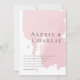 Une invitation de mariage avec un fond lavé abstrait aquarelle rose.