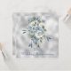 Une invitation de mariage anniversaire florale bleu poussiéreux sur fond argenté.