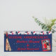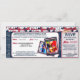 Invitation de mariage personnalisée sous forme de billet de baseball HOWARD - Une invitation de mariage personnalisée sur le thème du baseball sur le marbre. Le recto du billet commence par un fond bleu uni saupoudré de paillettes bleues et de points de confettis rouges, blancs et bleus. Des battes de baseball personnalisées sont placées à gauche. Une carte de baseball personnalisée avec la photo du couple est placée à droite. Des balles de baseball rouges, blanches et bleues bordent le haut. Un texte en verre rouge indique : Annonce de mariage avec le nom du couple. Le verso du billet a le même fond bleu et la même décoration de baseball (sans les paillettes et les points de confettis). La référence personnalisée est sur la gauche avec la date du mariage du couple. Toutes les informations importantes comme le lieu, l'heure, l'endroit, etc. sont au centre, ainsi que deux cartes de baseball personnalisées du couple. Le talon de réponse est situé à droite. Les invités découperont cette partie et la renverront pour indiquer le nombre d'adultes et d'enfants qui viendront. Une petite batte de baseball en bois est posée en haut à gauche. Un texte en verre décoratif indique la date du mariage du couple en haut. Une autre invitation est disponible pour les invités qui ne viennent qu'à la réception. Veuillez vérifier toutes les informations qui ont été personnalisées pour vous afin de vous assurer que tout est exact. *Une partie de cette invitation a été créée en utilisant des scripts PSP achetés et sous licence de
