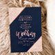 Invitation de mariage bleue marine et rose doré effet brilla