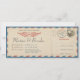 Une version moderne de l'avion postal vintage, également conçue comme une carte d'embarquement qui comprend l'onglet RSVP que les invités peuvent découper et renvoyer par la poste. Notez que la carte ne sera pas perforée mais il y a une note "coupez ici" avec une icône de ciseaux. Parfait pour les mariages sur le thème du voyage ou pour quiconque aime voler. Le rouge, le blanc et le bleu conviennent également à un thème patriotique. La couleur de fond est personnalisable mais sera principalement coupée après l'impression.