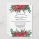 Une belle poinsettia rouge avec de la verdure sur cette invitation de mariage de Noël d'hiver.