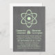 Faire-part de mariage de tableau de bord atomique mignon et nerveux avec un symbole atomique simple en vert menthe sur un tableau de bord look arrière - plan. Ce faire-part de mariage geek et amusant est parfait pour les amateurs de science ! Facile à customiser, il suffit d'ajouter les détails de votre mariage dans les espaces prévus. Cliquez sur "Customiser" pour trouver d'autres options de personnalisation.