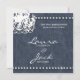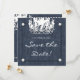 Invitation de mariage en jean bleu denim et diamants avec un joli lustre.