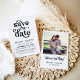 Cette invitation funky à enregistrer est un design intemporel qui convient aux événements bohèmes, rétro, minimalistes ou modernes. Vous pouvez facilement changer le texte et la couleur de fond pour mieux correspondre à votre thème. Ajoutez facilement votre propre photo pour avertir vos proches de votre jour spécial ! Cliquez sur le bouton "Modifier à l'aide de l'outil de conception" pour éditer !