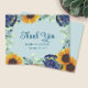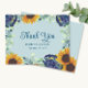 Cette carte de remerciement de mariage présente de jolies fleurs bleues à l'aquarelle, des tournesols et des branches d'eucalyptus sur un fond bleu poussiéreux. Des variations de ce design, différents types de papier (y compris des options économiques), ainsi que des produits coordonnés sont disponibles dans notre boutique, zazzle.com/store/doodlelulu. Contactez-nous si vous avez besoin que ce design soit appliqué à un produit spécifique pour créer votre propre article assorti unique ! Merci beaucoup d'avoir consulté un design DoodleLulu par 2 june bugs !
