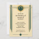 Invitation de mariage spectaculaire jaune et verte art déco pour une éclipse solaire.