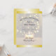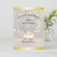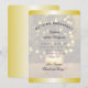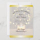 Invitation de mariage petit déjeuner de Noël avec bordures de couleur or et envers. Un arbre scintillant et une image de bougie constituent l'arrière-plan d'une typographie moderne avec le texte incurvé « mariage petit déjeuner » en haut. Ci-dessous, invitez des invités spéciaux à dîner avec les jeunes mariés et souhaitez-leur « bon voyage » pour leur lune de miel.