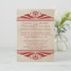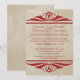 Faire-part de mariage élégante et chic Elegant Déco avec une paire de bordures de style art déco tourbillonnantes en rouge foncé et un look vintage arrière - plan dans un beige doux. Cet invitation possède un charme rustique tout en conservant une agréable atmosphère sophistiquée. Parfait pour un mariage à thème vintage art déco des années 1920. Facile à customiser, il suffit d'ajouter les détails de votre mariage dans les champs de texte fournis. Cliquez sur "Customiser" pour trouver d'autres options de personnalisation comme changer de polices ou de couleurs de texte.