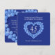 Invitation d'anniversaire de mariage saphir 45 ans. Effet de pierres saphirs magnifiques en forme de cœur dans des graphiques imprimés Invitation d'anniversaire de mariage saphir 45 ans personnalisable avec vos propres détails de fête de mariage saphir. Le 45ème anniversaire est traditionnellement associé aux saphirs et le cœur symbolise l'amour. Graphiques et conception originaux de Sarah Trett.