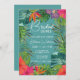 Demandez à vos invités de se préparer pour une fête avec une touche tropicale ! Cette invitation tropicale est parfaite pour les fêtes de mariage ou tout événement tropical. Avec des éléments floraux tropicaux et un fond sarcelle. Cette invitation crée une ambiance moderne et tropicale pour votre fête de mariage ou votre fête de fiançailles.