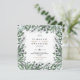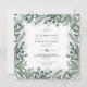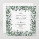 Invitation de mariage verdoyante, design classique simple de feuilles d'aquarelle sur un arrière - plan blanc immaculé. Parfait pour un mariage d'été ou d'hiver. Police élégante à l'avant, avec un mélange de textes de script et de serif, et espace pour votre site mariage à l'arrière.