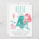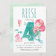 Fêtez un quatrième anniversaire avec notre Invitation Mermaid 4th Birthday! Plongez dans un monde sous-marin magique avec ce design enchanteur avec une sirène lunatique nageant gracieusement sous la mer. Personnalisez-vous avec vos détails de fête et faites un éclat avec cette délicieuse invitation qui promet une fête d'anniversaire mémorable!