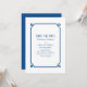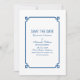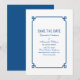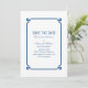 Annonce de mise en garde Save the Date simple et minimaliste Deco Chic avec une bordure ornée moderne de style art déco bleu foncé. Cette invitation de mise en garde élégante et classique est facile à personnaliser avec vos détails de mariage. Trouvez plus d'options de personnalisation en cliquant sur Personnaliser.