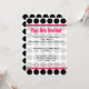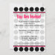 Une invitation présentant un fond à pois noir et blanc avec une garniture rose vif. Le côté opposé comporte un cadre en forme de cercle rose assorti avec le texte "Vous êtes invité". Personnalisez le texte avec les détails de votre occasion.