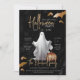 Élevez votre fête d'Halloween à un tout autre niveau de sophistication avec notre modèle de carte d'invitation de fête d'Halloween élégant. Avec un fantôme blanc pur et une citrouille de ton cuivré brun mat ainsi que des chauves-souris sinistres sur un fond en marbre noir, cette invitation donnera le ton parfait pour votre soirée effrayante. Créez une invitation personnalisée et terrifiante pour votre fête d'Halloween !