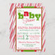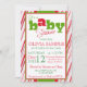 Invitation de Baby shower de Noël, bande de sucre de canne, invitation de baby shower, vacances, rouge, vert, rayure,