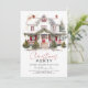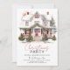 Invitation à la fête de Noël à la maison d'hiver - avec une ferme de couleur d'eau et festive tout décorée pour la saison des fêtes. Christmas Party Invitation présente une jolie typographie de script.