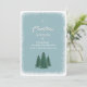 Script de vacances, invitant vos invités à votre événement de Noël! La couleur bleu-vert est douce et muette et donne un air brumeux de crépuscule. Les arbres exposés poussent dans une forêt magique, où ils sont mystérieusement décorés en hiver. Commencez votre divertissement par une invitation réfléchie et belle qui se concentre sur la nature.