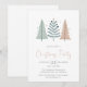 Invitation vos invités dans le style avec cette invitation à la fête de Noël chic et minimaliste avec un trio d'arbres de vacances d'inspiration scandinave moderne dans des tons doux vert pastel, roux et terreux. Le design épuré et les détails festifs subtils créent une atmosphère chaleureuse et contemporaine, parfaite pour des réunions de vacances confortables, des dîners saisonniers élégants ou des célébrations de Noël modernes. Entièrement personnalisable avec les détails de votre fête pour le rendre unique.