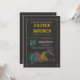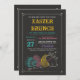 Une invitation à la mode de Pâques avec un style en tableau noir avec des oeufs décorés et un lapin.