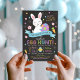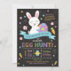 Profitez de cette charmante invitation de lapin de Pâques parfaite pour vos rassemblements de chasse aux œufs de Pâques. Elle présente un lapin mignon, des couleurs ludiques, des éléments décoratifs et un fond de tableau noir !