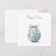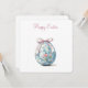 Un œuf de Pâques magnifiquement décoré avec un motif floral aux tons pastel bleu et rose, surmonté d'un charmant nœud. Le design vibrant capture la festivité saisonnière avec élégance et charme. Parfait pour envoyer des vœux chaleureux à la famille, aux amis et aux proches. Partagez la joie de Pâques avec une carte qui reflète votre style et votre chaleur individuels. Faites de cette Pâques un moment exceptionnel !
