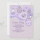 Une élégante invitation de Pâques aux bords et aux coeurs blancs et lilas. C'est parfait pour un dîner de Pâques ou une chasse aux oeufs.