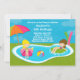 Invitation mignonne d'anniversaire de réception au bord de la piscine d'enfants. Les caractéristiques badine dans la piscine un beau jour d'été avec la limonade et un parapluie. Quelques éléments JDDigiDesign