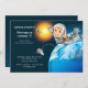 Une invitation mignonne de fête d'anniversaire avec un thème d'espace extra-atmosphérique. Il comporte un astronaute de garçon, un vaisseau spatial, le soleil et plus.