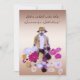 Customisez facilement cette invitation lunatique et artistique de partie de solstice d'été qui comporte un jardinier mystique de fleur perdu dans ses dahlias. Il est habillé aux nuances du brun, or, blanc et se bronze et des sports un casquette pour l'ombre, une barbe et une moustache. Les fleurs sont magenta, roses, jaunes, lavande et pourpre et forment un motif abstrait tourbillonnant autour de lui. Une plus petite image est répétée sur le dos aussi bien que tous informations pertinentes.