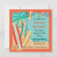 Cowabunga ! Invitez vos amis à cette invitation orientée de partie de surf de plage avec les panneaux de surf, la torche de tiki, les coquillages et l'ensemble colorés de palmier contre une ligne de rivage de plage. Grand pour tout âge. Perfectionnez pour n'importe quel événement orienté de plage. Illustration tirée par la main par Mcbooboo. Sentez-vous svp libre pour me contacter avec tous les questions ou changements que vous pourriez avoir besoin !